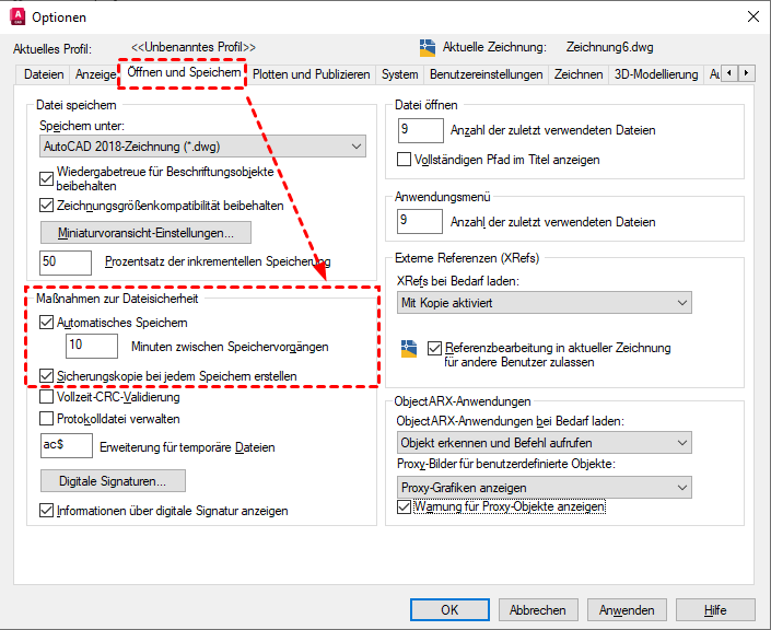 Tipp 1: AutoSave aktivieren: Aktivieren Sie die automatische Speicherung in AutoCAD und setzen Sie kurze Intervalle (z. B. 5–10 Minuten).
