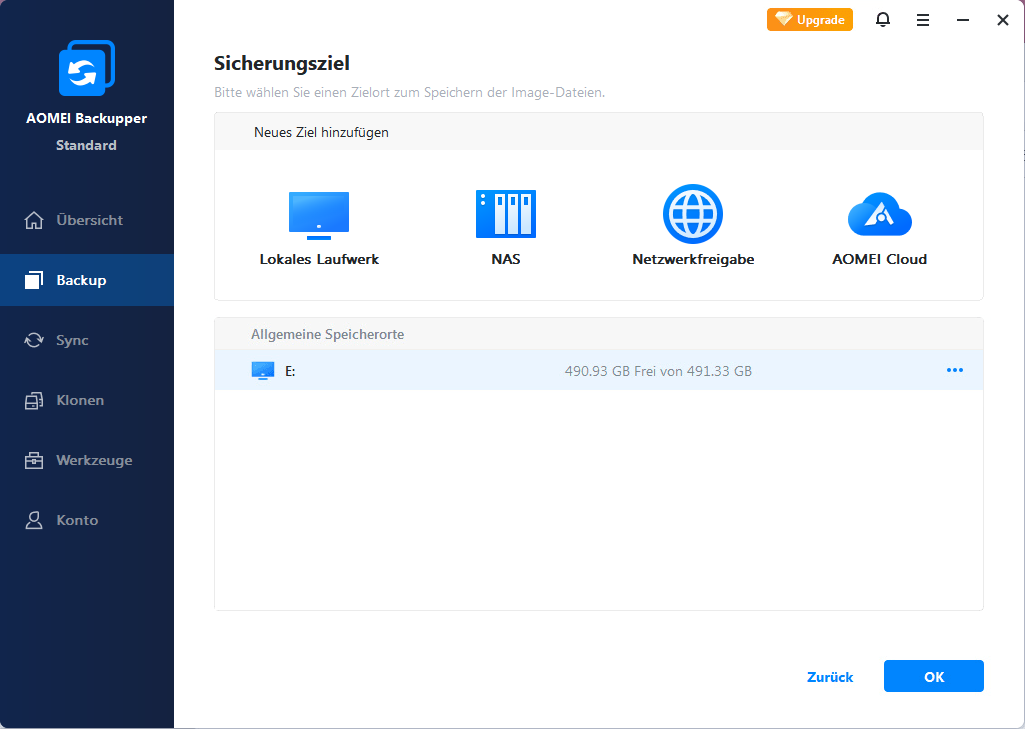 Schritt 3. Wählen Sie den gewünschten Speicherort für Ihre Sicherung, z. B. eine externe Festplatte, ein NAS-Laufwerk oder einen anderen Speicherort.