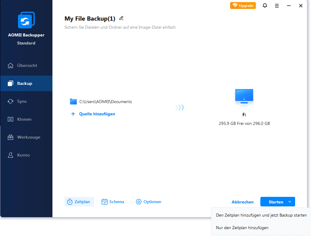 Hierfür eignet sich besonders die kostenlose Backup-Software AOMEI Backupper, die eine einfache Möglichkeit bietet, Ihre Dateien automatisch zu sichern und bei Bedarf schnell wiederherzustellen.