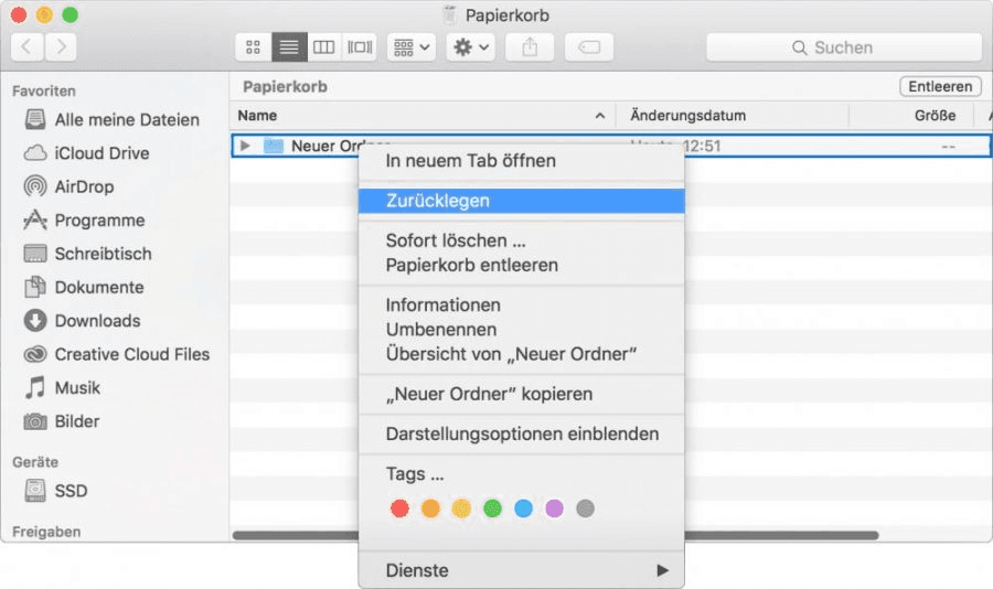 Diese Methode funktioniert nur bei Dateien, die auf normalem Wege gelöscht wurden. Wenn Sie eine gelöschte Datei nicht im Papierkorb finden können, bedeutet dies, dass sie dauerhaft gelöscht wurde.
