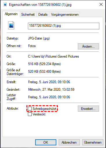 - Wenn Ihre Dateien schreibgeschützt sind, gehen Sie einfach zum Fenster „Eigenschaften“, wählen Sie Allgemein und deaktivieren Sie die Schreibgeschützte Attribute. Deaktivieren Sie die schreibgeschützten Attribute.