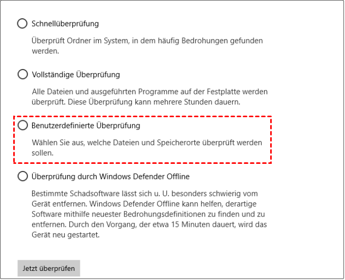 Schritt 3. Wählen Sie „Benutzerdefinierte Überprüfung“ und klicken Sie auf „Jetzt überprüfen“.