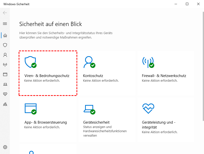 Schritt 1. Gehen Sie zu „Einstellungen“ > „Windows-Sicherheit“ und wählen Sie „Viren- & Bedrohungsschutz“.
