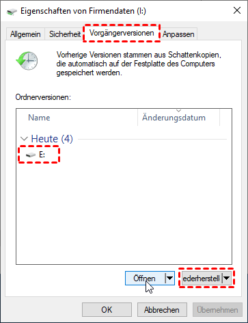 Methode 4: Unwiderruflich gelöschte Dateien mit „Vorherigen Versionen“ wiederherstellen