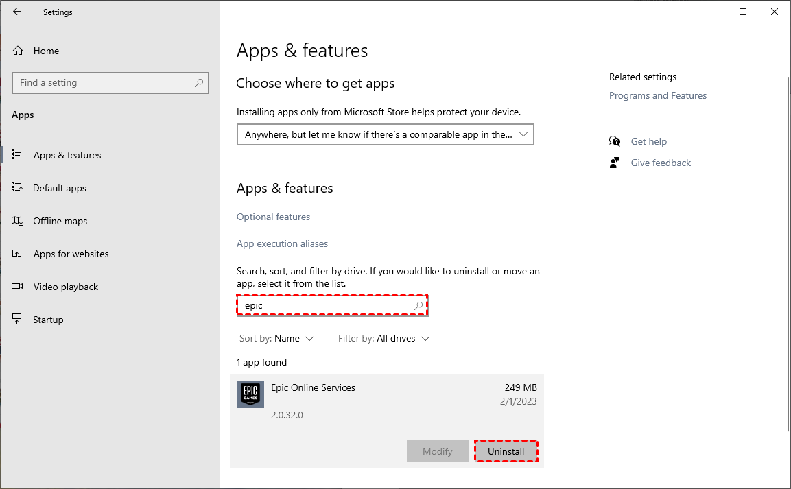 🔹 Suchen Sie Epic Online Services, deinstallieren Sie es und laden Sie die aktuelle Version von der Epic Games-Website herunter.