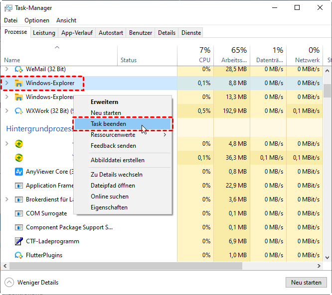 🔹 Falls das Problem bleibt, starten Sie zusätzlich den Computer neu.