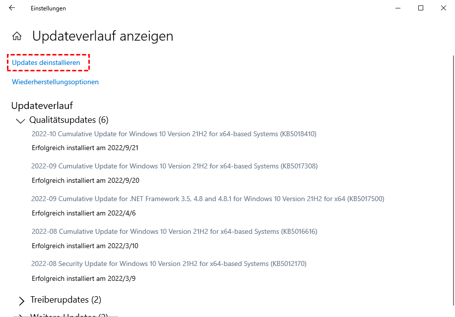 Wenn der Fehler nach einem Windows-Update auftritt, könnte ein fehlerhaftes Update verantwortlich sein.