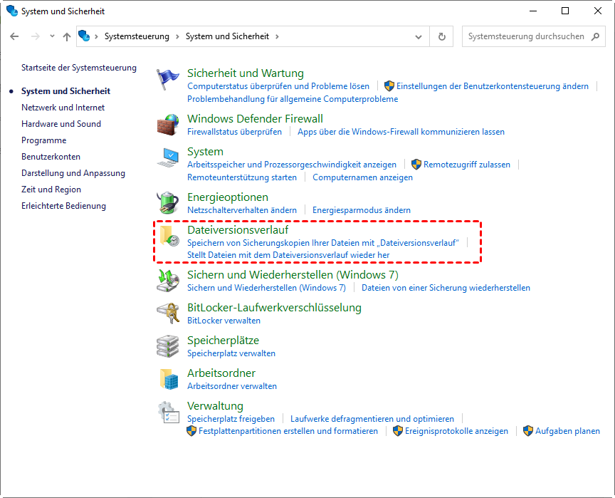 Schritt 2. Gehen Sie zu „Dateiversionsverlauf“.