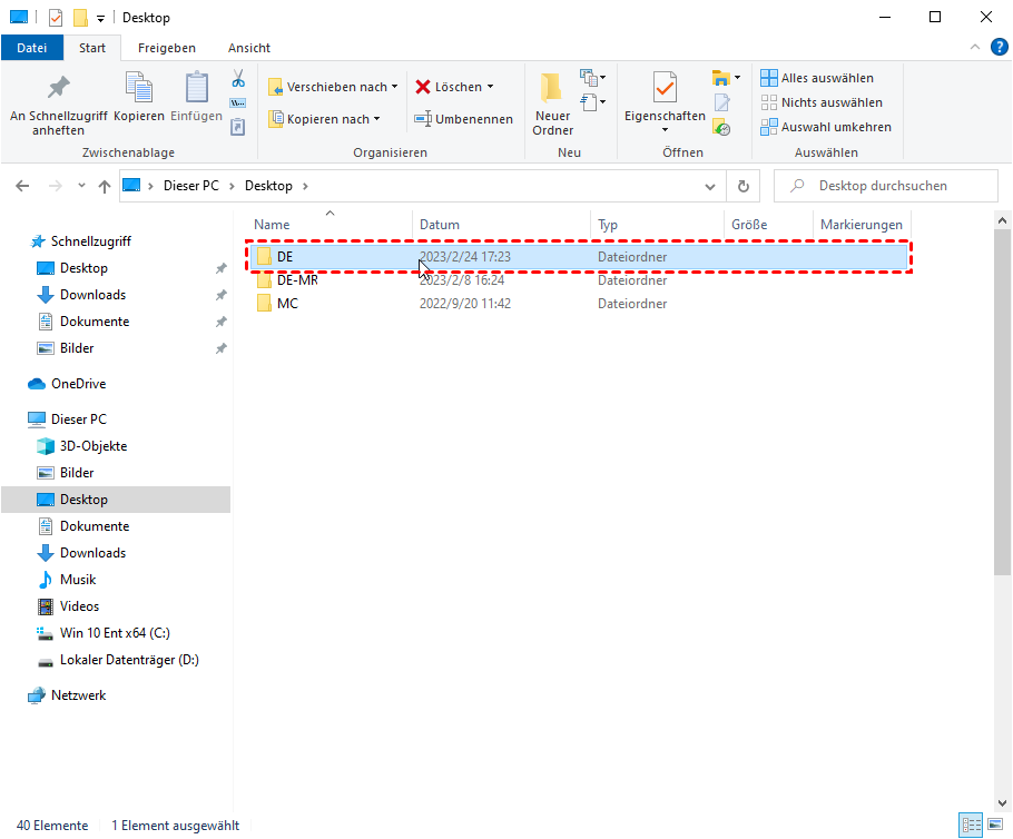 Schritt 1. Starten Sie den „Datei-Explorer“ oder „Dieser PC“, suchen Sie den Ordner, in dem die gelöschte Datei gespeichert ist.