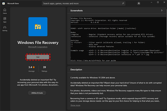 Schritt 1. Gehen Sie zum Microsoft Store und holen Sie sich „Windows File Recovery“.