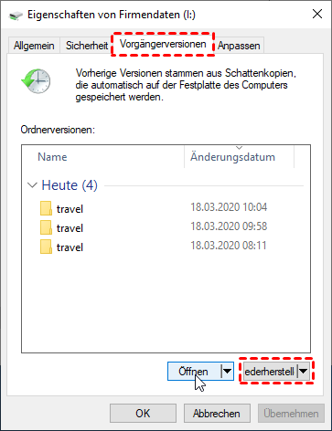 Methode 2: Papierkorb mit Vorgängerversionen wiederherstellen