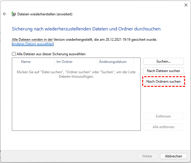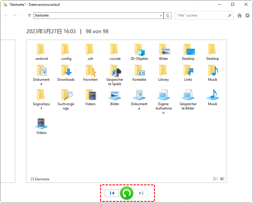 Methode 4. Verlorene Ordner über Dateiversionsverlauf wiederherstellen