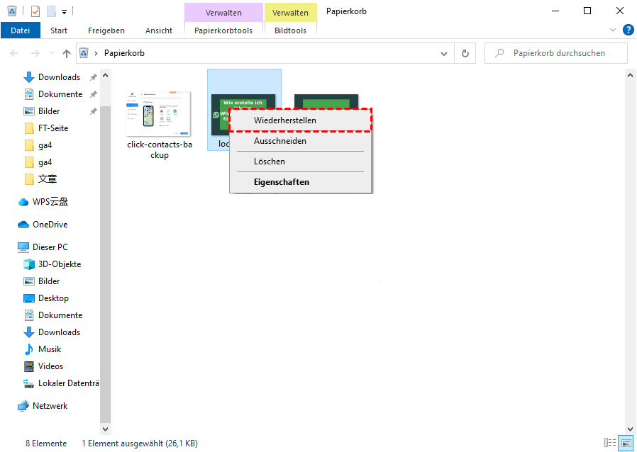 Methode 1. Gelöschte Ordner aus Papierkorb wiederherstellen