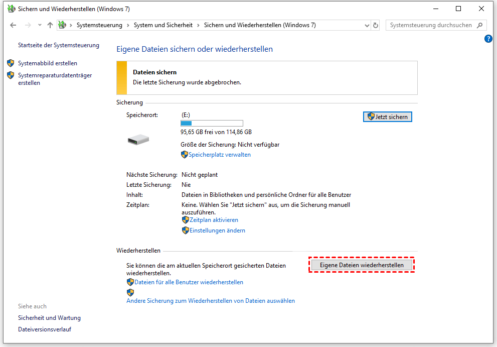 Windows bietet eine Sicherungssoftware – Sichern und Wiederhestellen (Windows 7). Diese Funktion speichert die Sicherungsdaten Ihres ausgewählten Laufwerks an einem bevorzugten Ort. Wenn Sie mit dieser Software eine Sicherungsaufgabe einrichten, können Sie versuchen, Dokumente aus der Sicherung wiederherzustellen.