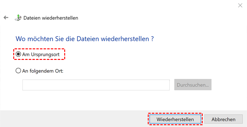 Schritt 4. Wählen Sie den Speicherort für die Wiederherstellung, und klicken Sie dann auf Wiederherstellen.