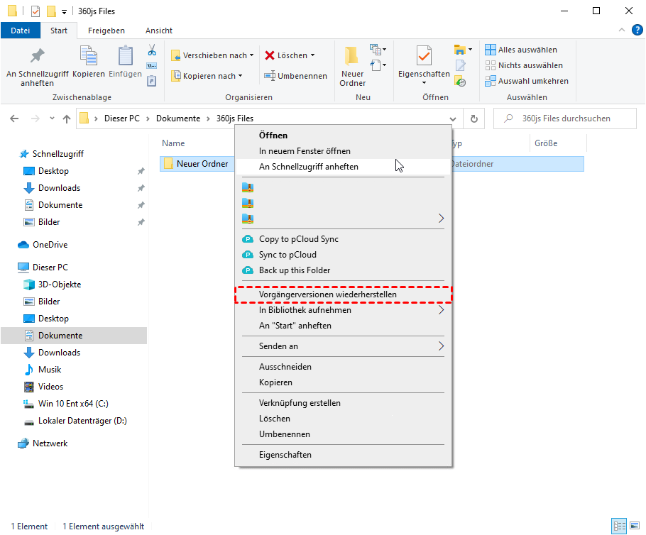 Schritt 3. Klicken Sie auf „Vorgängerversionen wiederherstellen“. Wählen Sie die Version der Datei, die Sie wiederherstellen möchten, und klicken Sie auf „Wiederherstellen“.