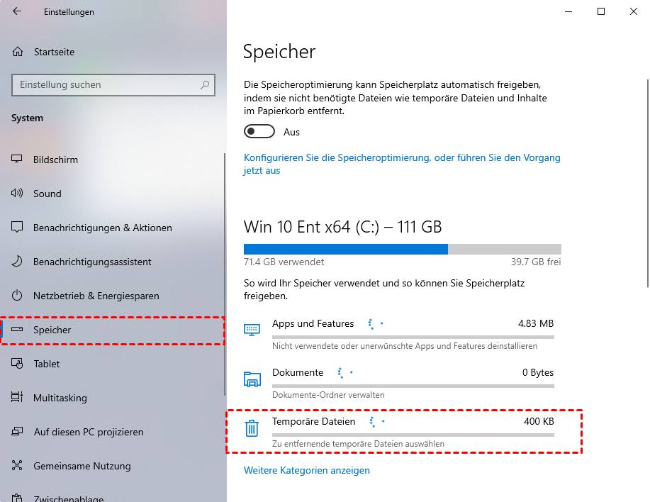 Methode 2: Speicheroptimierung aktivieren (automatisch)