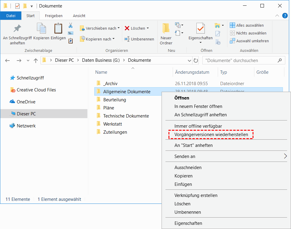 ▶ Methode 2. Gelöschte Dateien über Vorgängerversionen wiederherstellen