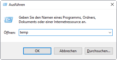 Lösung 1. Temporäre Dateien bereinigen über „Ausführen“