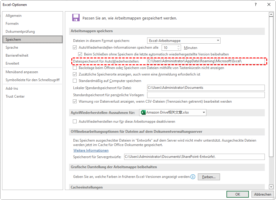 Lösung 1. Überschriebene Excel-Dateien mit AutoSave wiederherstellen