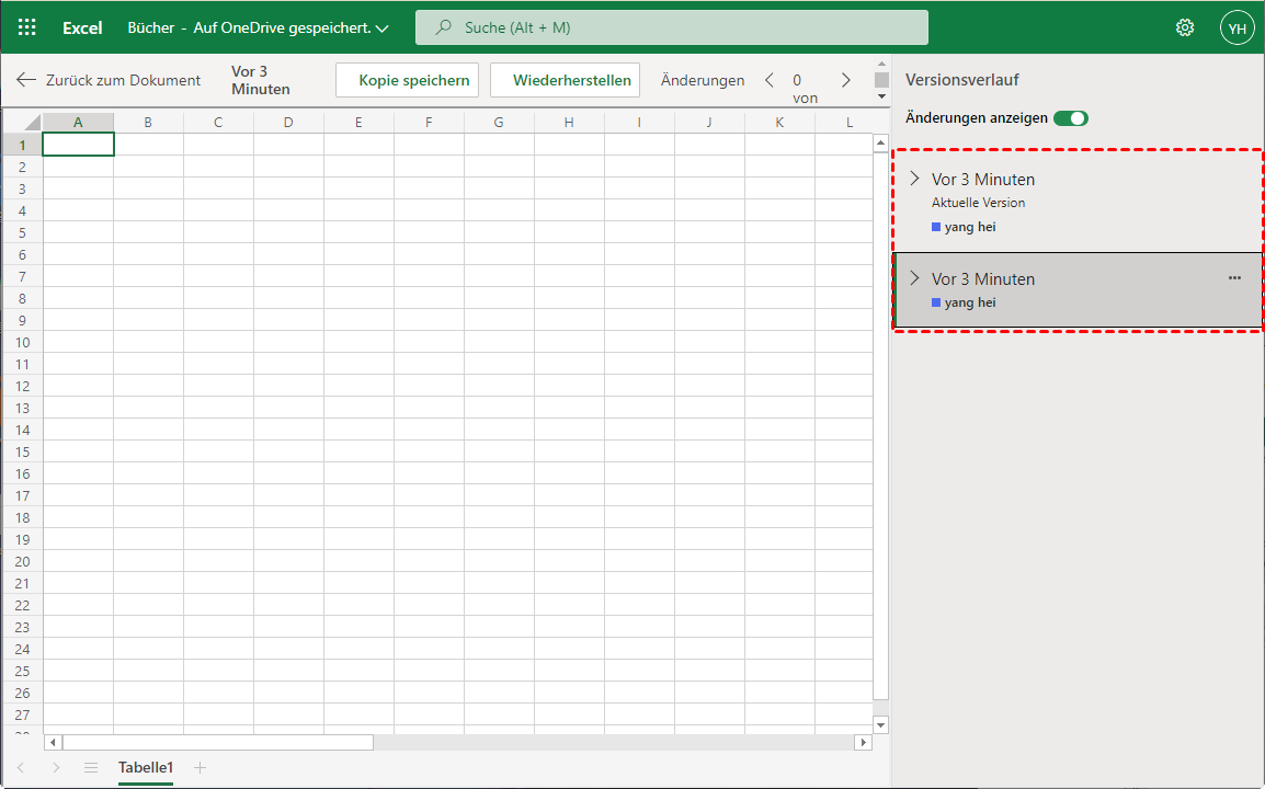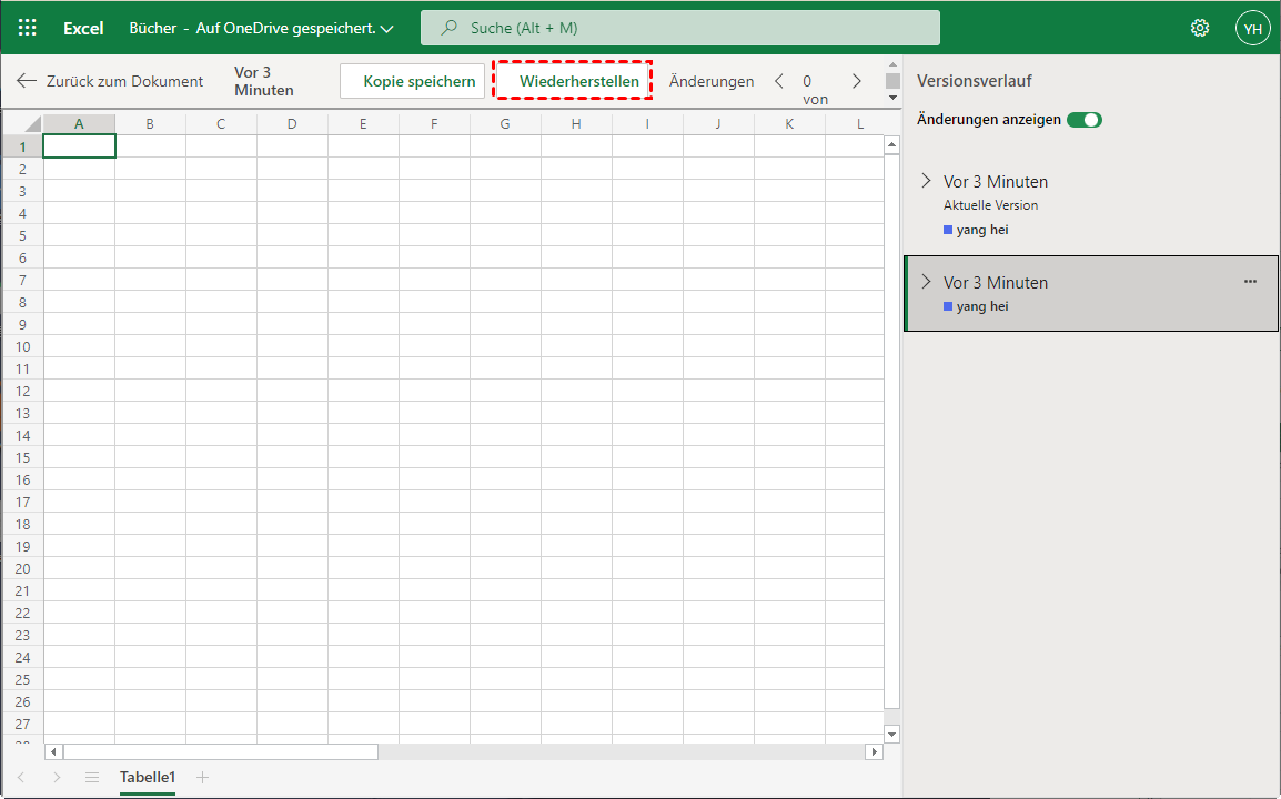 Wenn Sie Ihre Excel-Dateien in OneDrive oder einer SharePoint Online-Bibliothek gespeichert haben, können Sie ebenfalls eine überschriebene Excel-Datei wiederherstellen, indem Sie eine frühere Version der Datei abrufen. Diese Methode gilt für die Online-Version über die Webseite.
