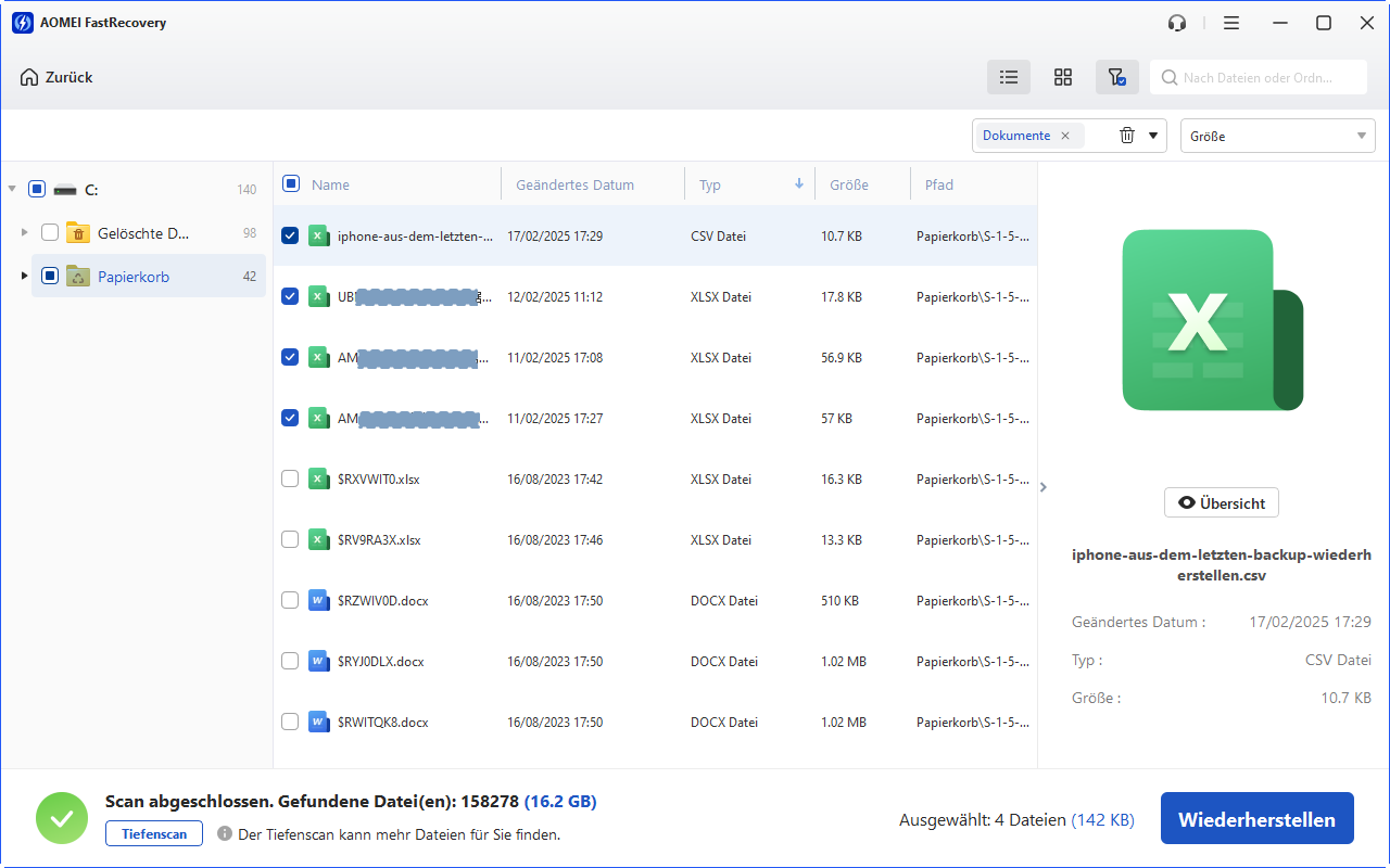 Teil 3. Wie kann man gelöschte oder verlorene Excel-Dateien problemlos wiederherstellen?