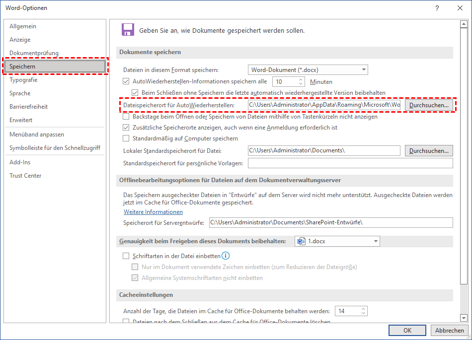 Methode 2: Ungespeicherte Word-Datei wiederherstellen aus AutoWiederherstellen