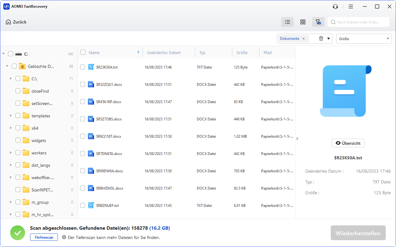 Szenario 2. Versehentlich gelöschte Word-Dateien wiederhertsellen mit Datenrettungssoftware