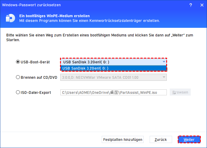 Methode 4. Computer Passwort ändern mit Kennwortrücksetzdatenträger