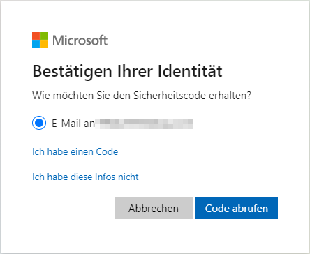 Schritt 2. Dieses Tool wird Ihre Identität überprüfen, kreuzen Sie E-Mail an und klicken Sie auf Code abrufen.