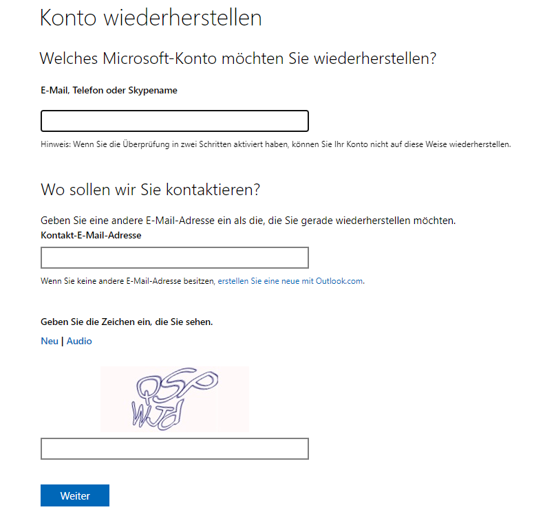 | Methode 3: Microsoft-Konto online | Microsoft-Konten | Einfach | Zugang zu alternativer E-Mail/Telefon |