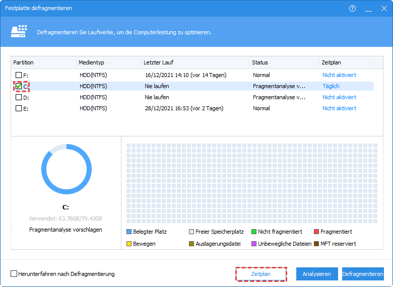 Methode 3: Geplante Defragmentierung mit AOMEI Partitionssoftware