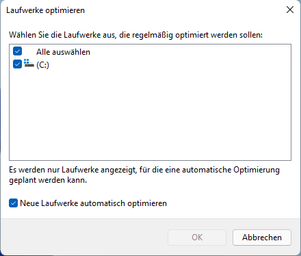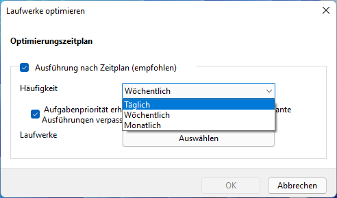 Die einfachste Methode, um eine geplante Defragmentierung einzurichten, bietet die Windows-eigene Datenträgeroptimierung.