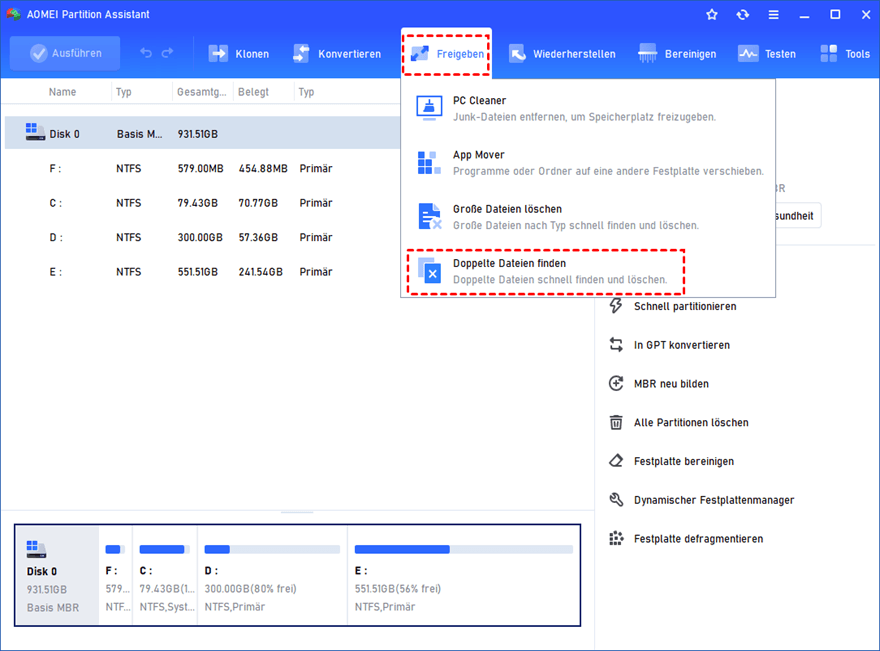 So finden und löschen Sie doppelte Dateien mit AOMEI: