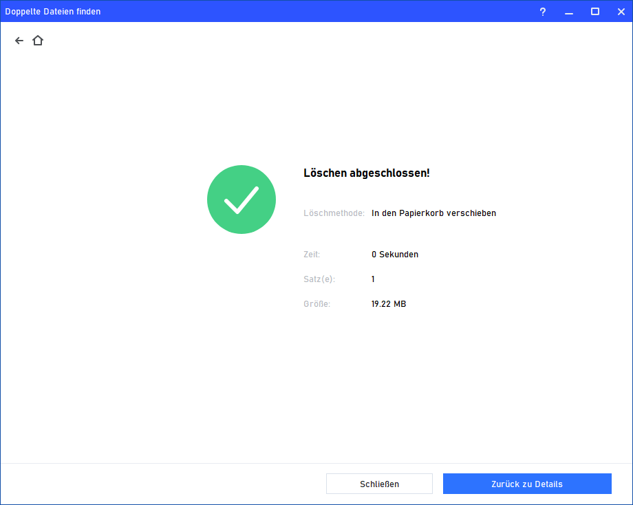 Nach der Bereinigung erhalten Sie eine Bestätigung. Der freigewordene Speicherplatz steht Ihnen nun wieder zur Verfügung.