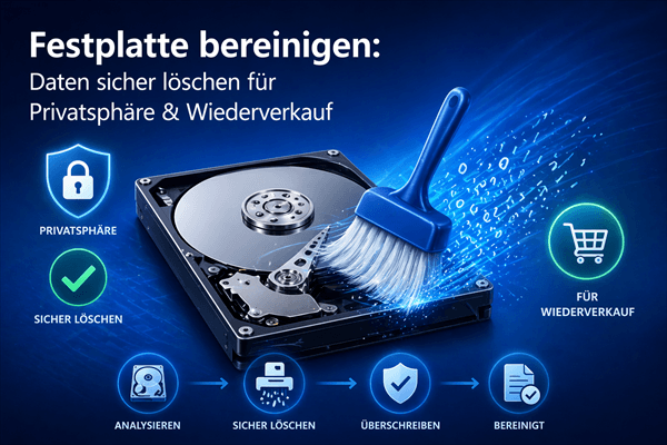 Das Bereinigen der Festplatte ist der sicherste Weg, um persönliche Daten unwiderruflich zu löschen – ob vor dem Verkauf eines Computers, der Weitergabe oder der umweltgerechten Entsorgung.