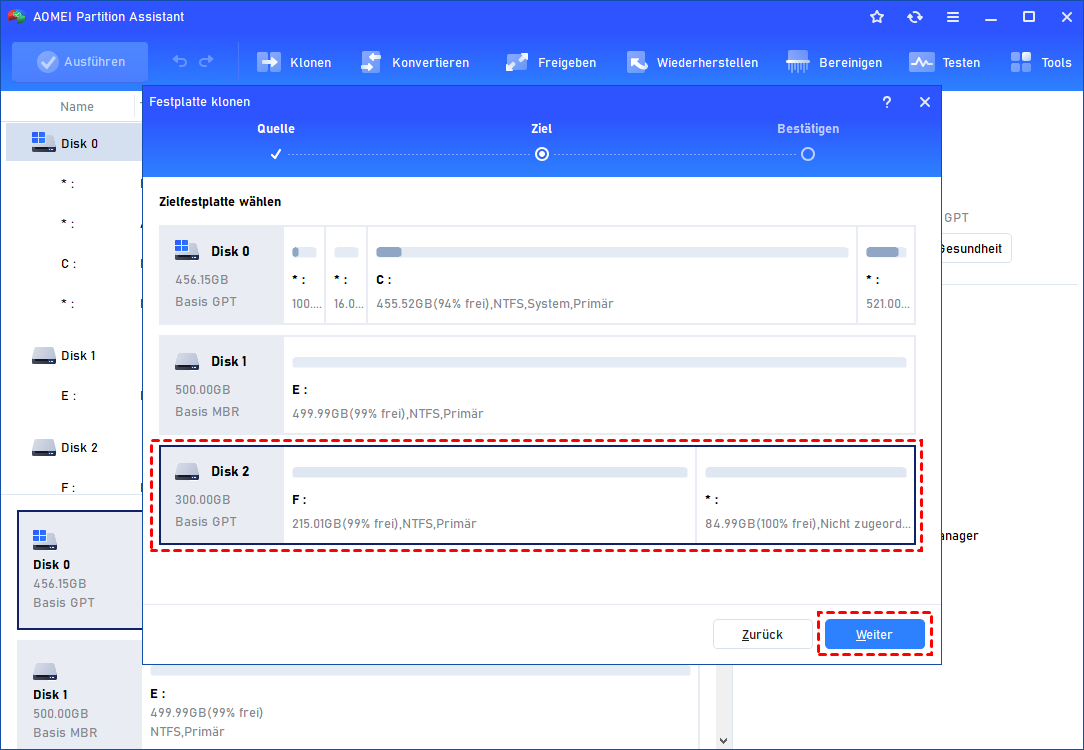Schritt 3. Wählen Sie die SSD als Zielfestplatte.