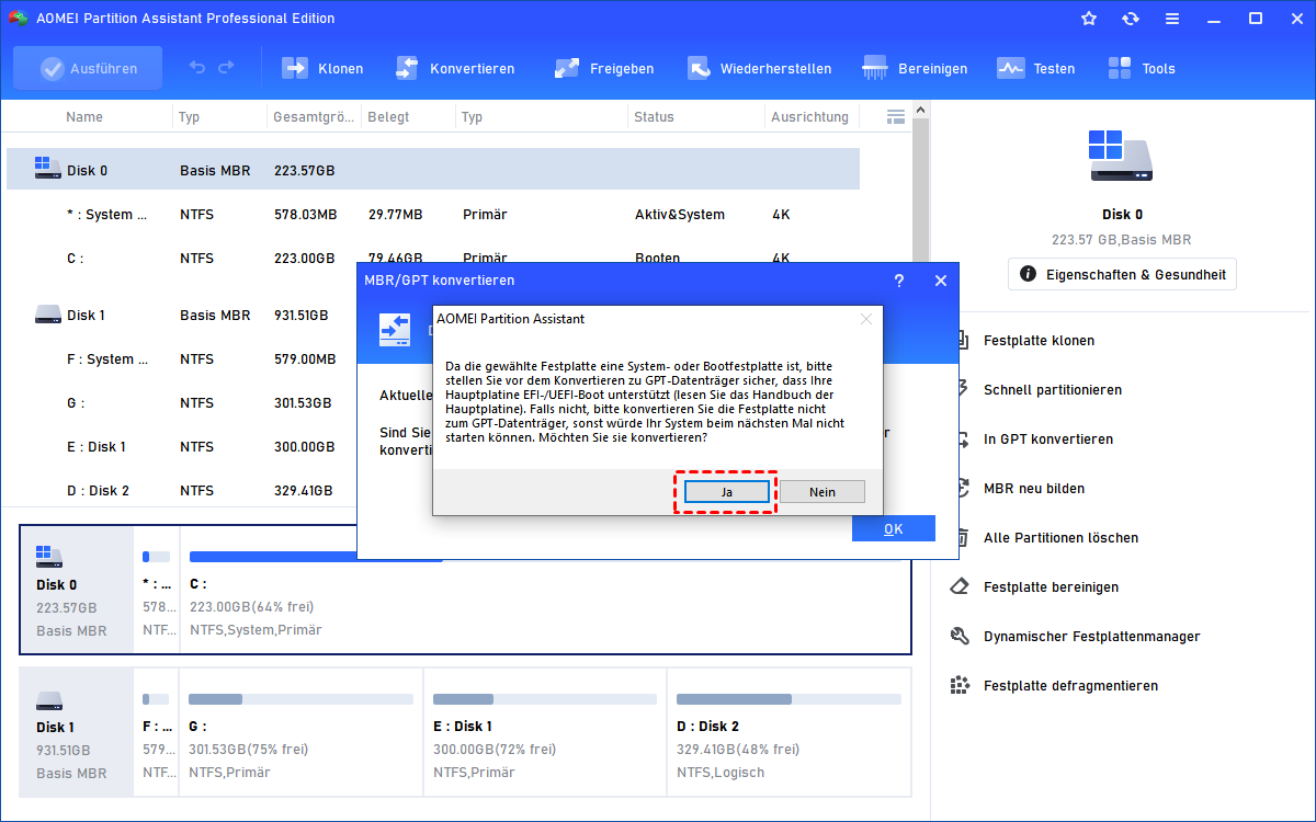 Lösung 2. MBR in GPT umwandeln ohne Datenverlust