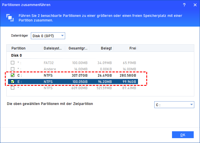 ✓ Partitionen zusammenführen ohne Datenverlust – Ihre Daten bleiben erhalten