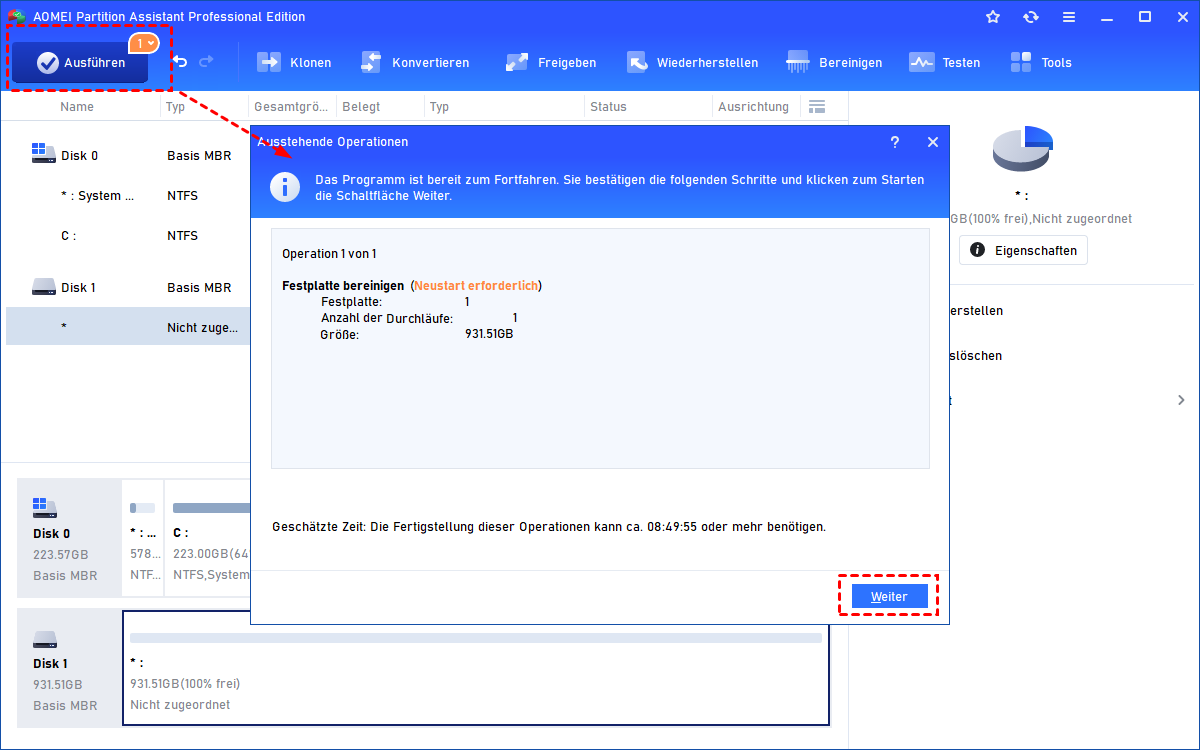 Schritt 4. Klicken Sie auf „Ausführen“ und dann auf „Weiter“.