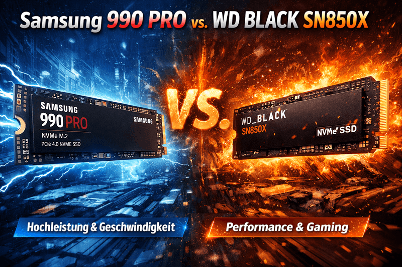 Der Vergleich Samsung 990 Pro vs WD Black SN850X zeigt zwei absolute Spitzen-SSDs, die sich in vielen Bereichen ähneln, aber unterschiedliche Stärken haben: