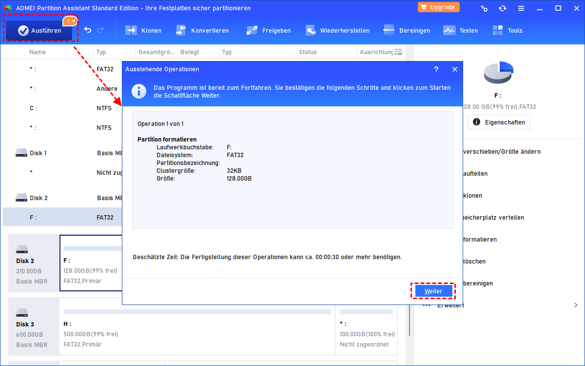 Schritt 4. Jetzt wurde SD-Karte RAW erfolgreich formatiert, was Sie tun müssen, ist es, auf „Ausführen“ zu klicken, um die Formatierung zu bestätigen!