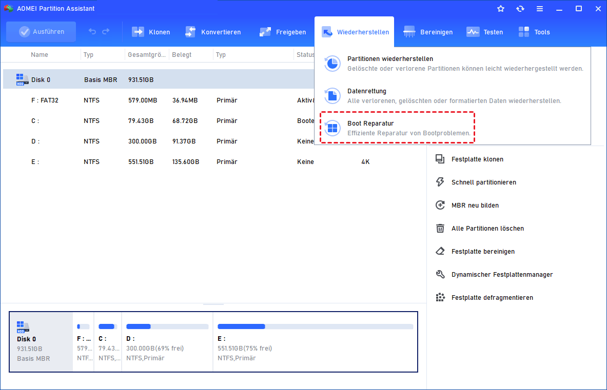 Schritt-für-Schritt-Anleitung: Boot Reparatur mit AOMEI