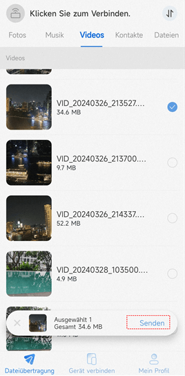 3. Gehen Sie auf dem alten iPhone zu Dateiübertragung > Wählen Sie die zu übertragenden Daten aus und tippen auf Senden.