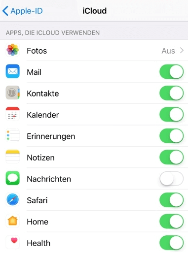 Möchten Sie Daten auf neues iPhone außer Fotos übertragen? Während iCloud es Ihnen nicht erlaubt, die zu sichernden Dateien auszuwählen, können Sie alle Apps abwählen, die nicht in das Sicherungspaket aufgenommen werden sollen.