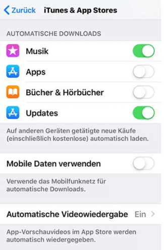 Schritt 2. Melden Sie sich mit Ihrer Apple ID an, schalten Sie den Schalter neben Apps unter Automatischer Download ein.