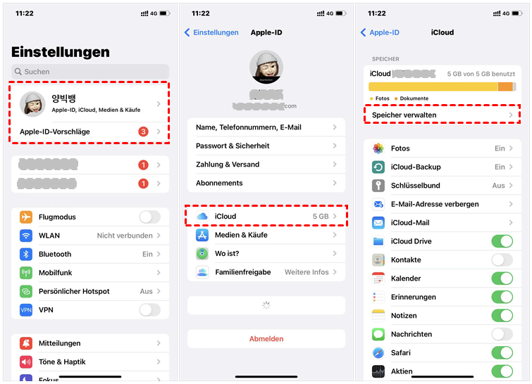Wahrscheinlich stimmt etwas mit dem iCloud-Synchronisierungsdienst nicht, was dazu führt, dass Apps nicht auf das neue iPhone übertragen werden. In diesem Fall sollten Sie sich bei Ihrem iCloud-Konto ab- und wieder anmelden. So melden Sie sich bei iCloud ab und wieder an: