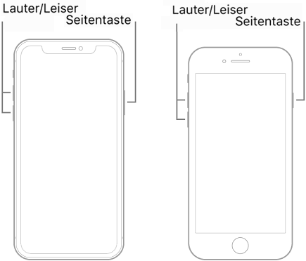 Schritt 1. Für iPhone 8 und höher: Drücken Sie kurz die Taste „Lauter“ und dann kurz die Taste „Leiser“. Drücken und halten Sie die Seitentaste, bis Sie das Apple-Logo sehen.
