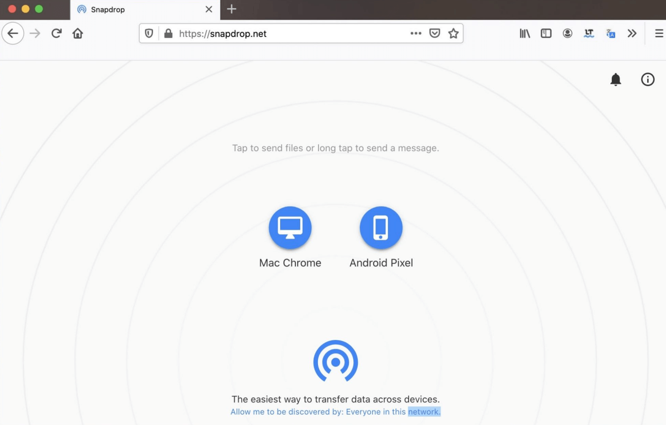 Hier nehmen wir Snapdrop als Beispiel. Es ermöglicht Ihnen die Datenübertragung über den Webbrowser, sodass Sie keine App herunterladen müssen.