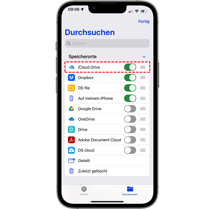 Wenn Sie keine App auf dem iPhone installieren möchten, ist iCloud Drive eine gute Wahl. Sie können in der App „Dateien“ auf iCloud Drive zugreifen.